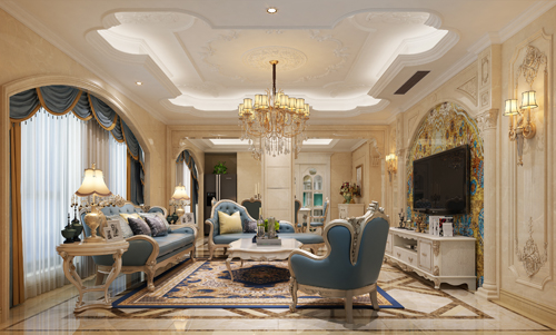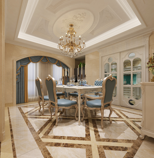 欧式风格室内装修效果图-龙光玖珑湖三居136平米